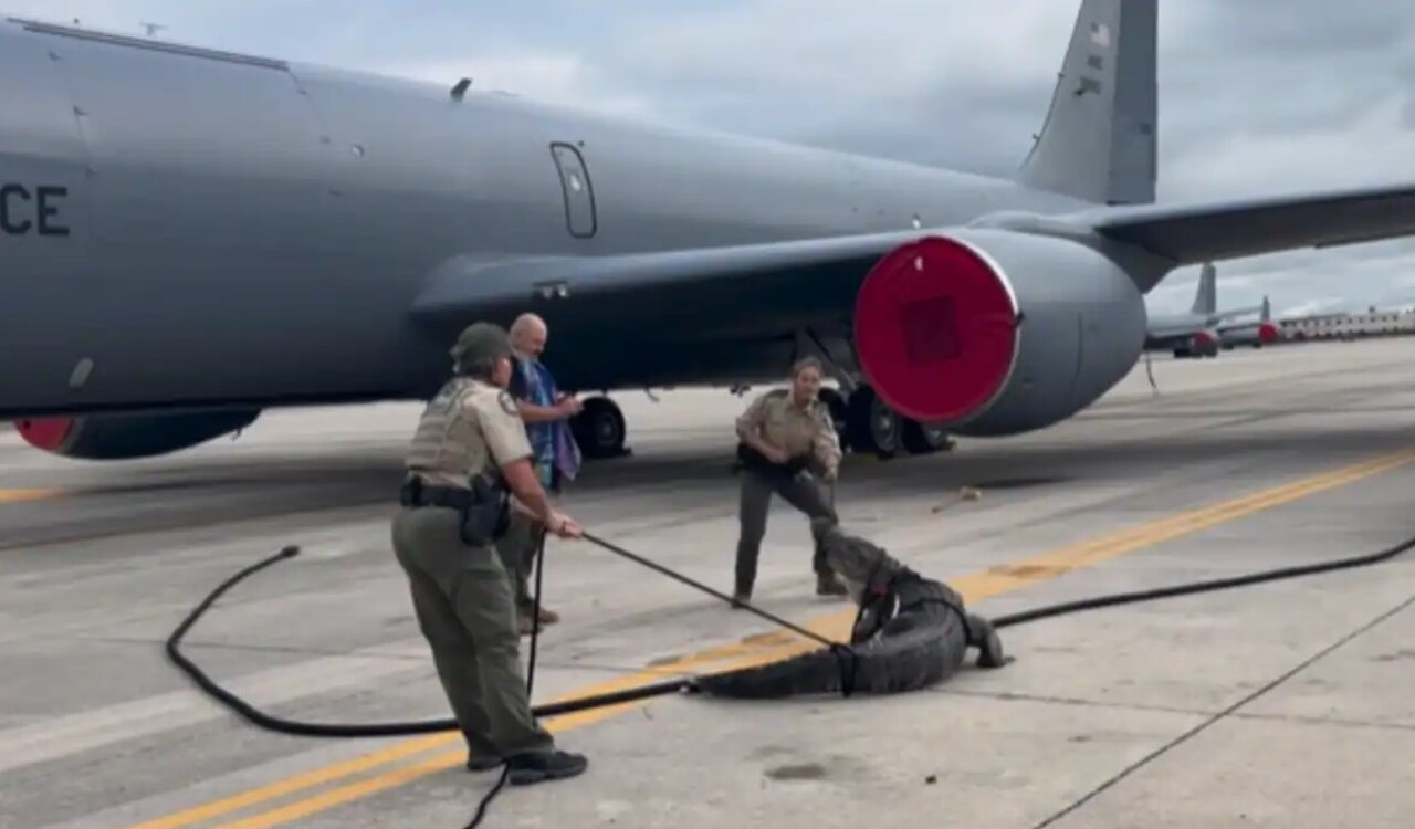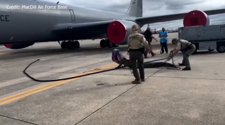 اخیرا در فرودگاه مکدیل (پایگاه نیروی هوایی فلوریدا) در آمریکا، یکی از هواپیماها نتوانست پرواز کند. علت آن هم وجود تمساحی در باند فرود بود.