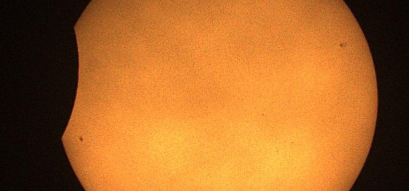 در طول این رویداد لکه های خورشیدی بر روی خورشید قابل مشاهده بود. لکه خورشیدی ناحیه ای از فعالیت مغناطیسی شدید در سطح خورشید است. به عنوان یک ناحیه تاریک روی صفحه خورشیدی ظاهر می شود.
